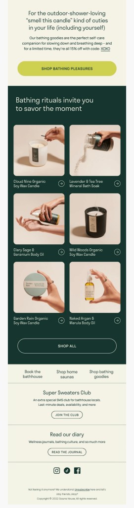Okay, they are all settled in and comfortable now. From the first email, they were showered with appreciation and on the 2nd email, they grew to empathize with you and ultimately become your supporter. So now, they are ready to take action! What better way to make this easy for them than giving them an exclusive coupon/discount code to make any purchase they would like on the website? This will also keep them coming back for more because you have proven to them that you don’t just want to use them for the benefit of your business — you want to help them and build a relationship with them!